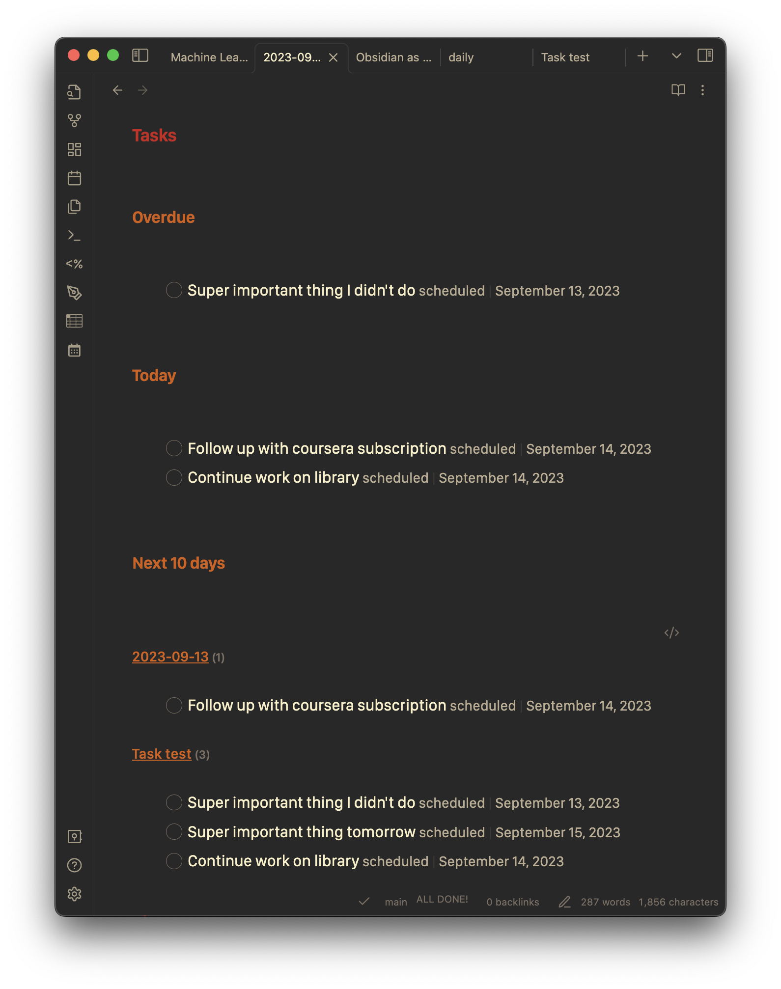 - [ ] A task [scheduled :: 2023-09-14]