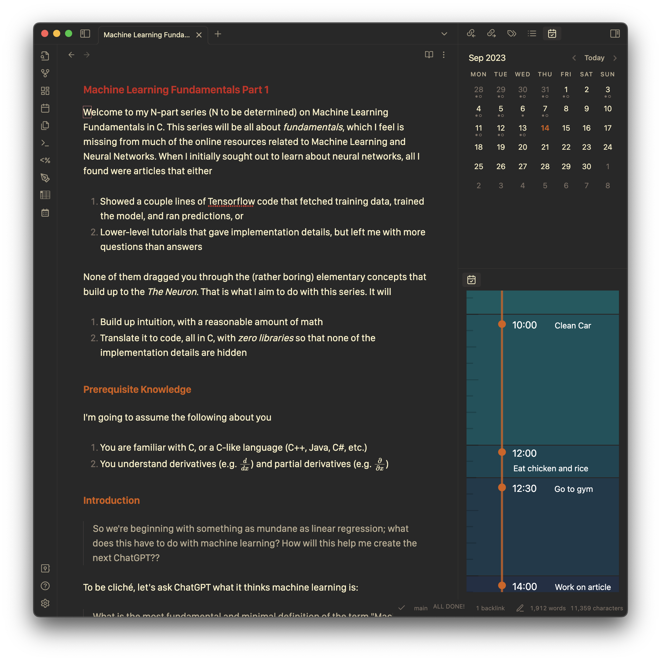That’s when I found Obsidian. With a few plugins, it became fully programmable like Vim, and also happened to be built for note taking.